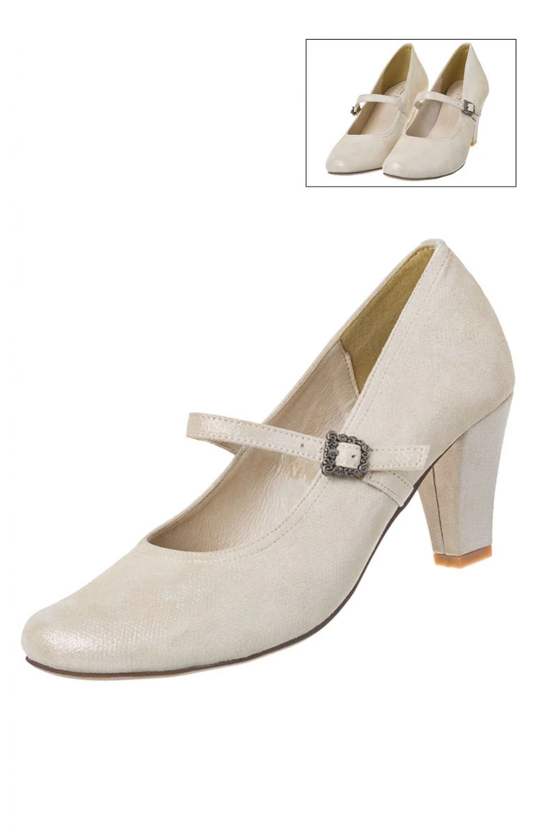 Madeln, zeigt ha eure Schua! Mit den Pumps von Andrea Conti muss Frau die Füße nicht verstecken! Im Gegenteil: Die Mary-Janes mit charakteristisch runder Kappe präsentieren sich als absoluter Hingucker beim Trachtengwand. Ein liebevolles Detail stellt der verstellbare Riemen inklusive verschnörkelter Dornschließe dar. Zauberhaft und elegant zu Dirndln in allen Längen: die Pumps von Andrea Conti.