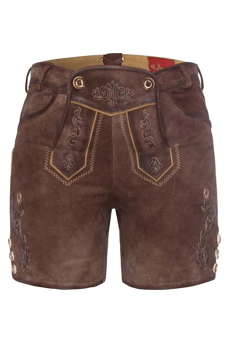 - Samtweiche, kurze Lederhose mit Stick und Prägung