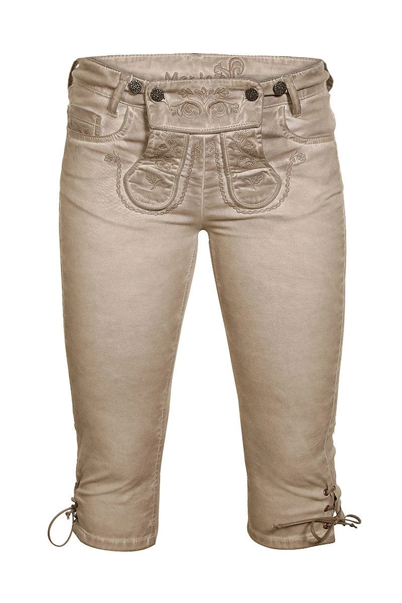 Perfekt für Ihr neues Trachten-Outfit ist diese steinfarbene Kniebundhose in Lederhosen-Optik von MarJo! Der Washed Out-Look und die aufgestickten Verzierungen am Bund und an der rechten Gesäßtasche machen diese Hose zu einem besonderen Stück in Ihrem Kleiderschrank.