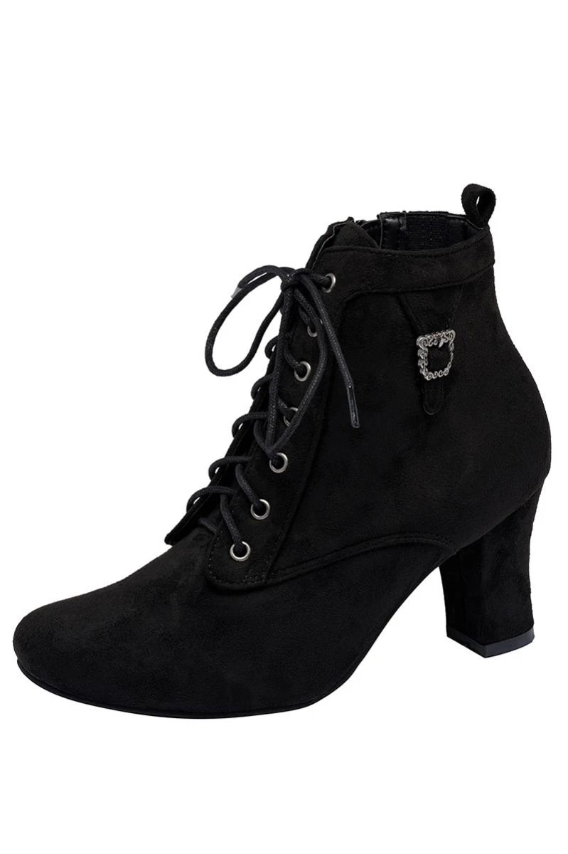 - schwarze Schnürstiefel in Veloursleder-Optik