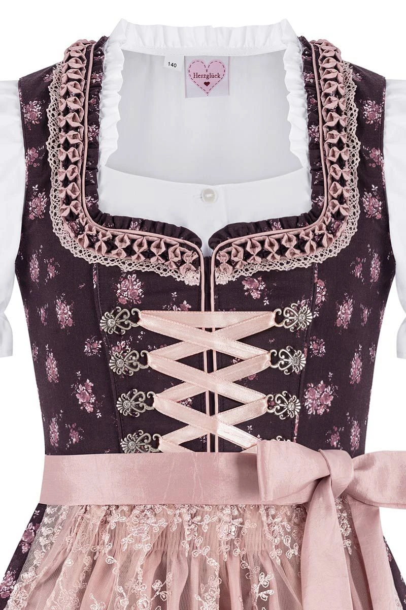 Produktbeschreibung Herzglück Kinder Dirndl dunkelrot altrosa Annalena