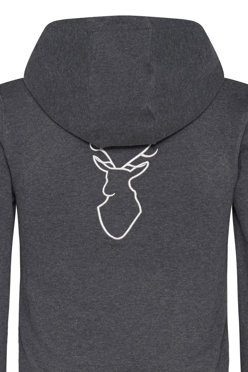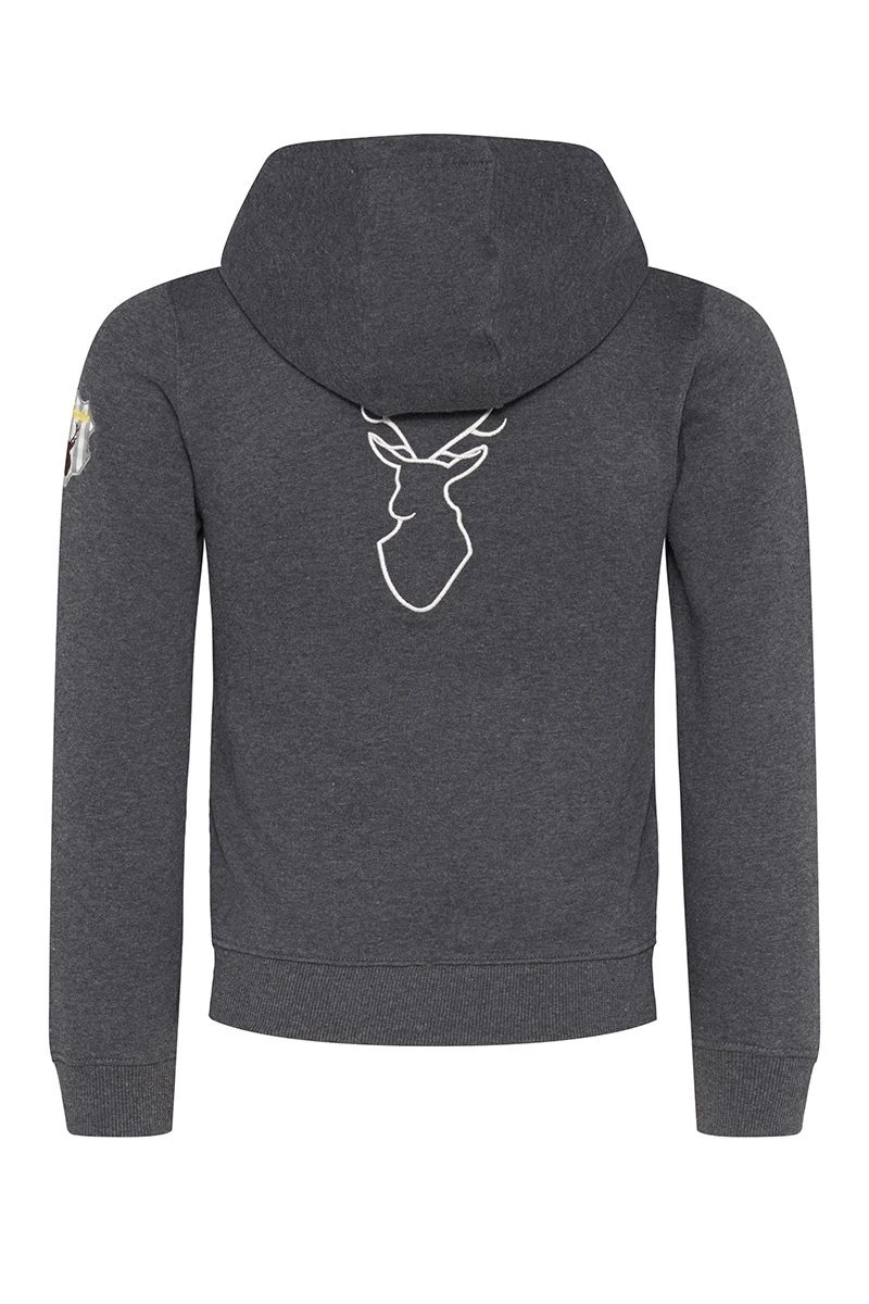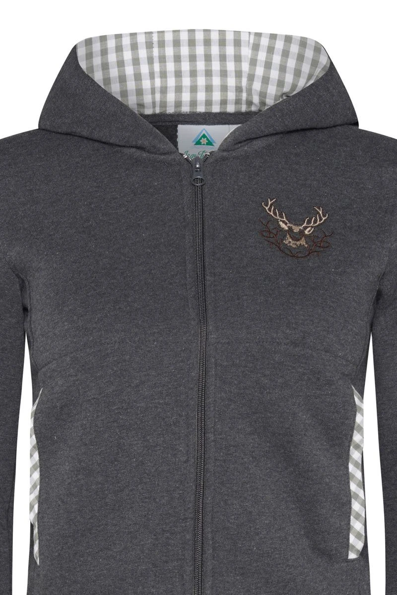 Produktbeschreibung Isar Trachten Kinder Kapuzen-Sweatjacke anthrazit mit Hirschstickerei Ben