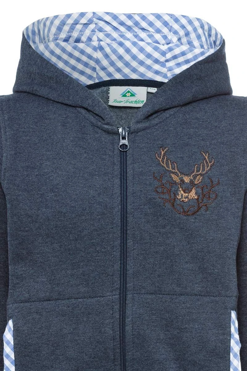 Produktbeschreibung Isar Trachten Kinder Kapuzen-Sweatjacke jeansblau
