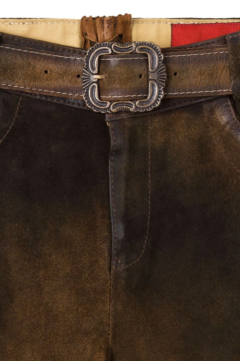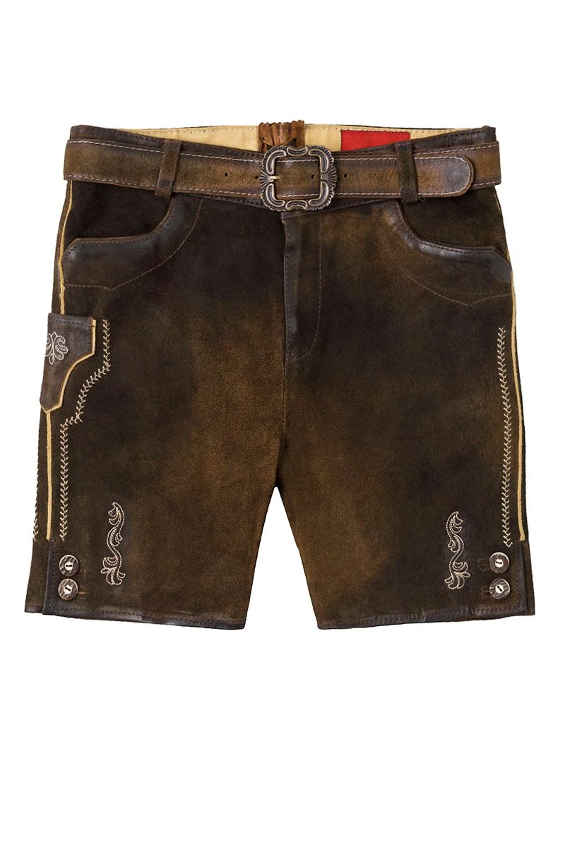 MOSER Kinder Lederhose kurz mit Gürtel braun antik Flori