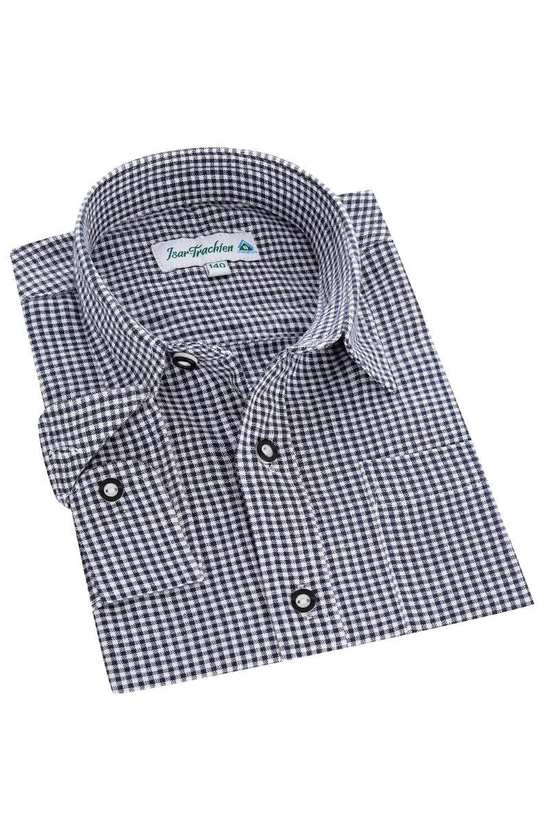Produktbeschreibung Isar Trachten Kinder Trachtenhemd langarm dunkelblau kariert Martin