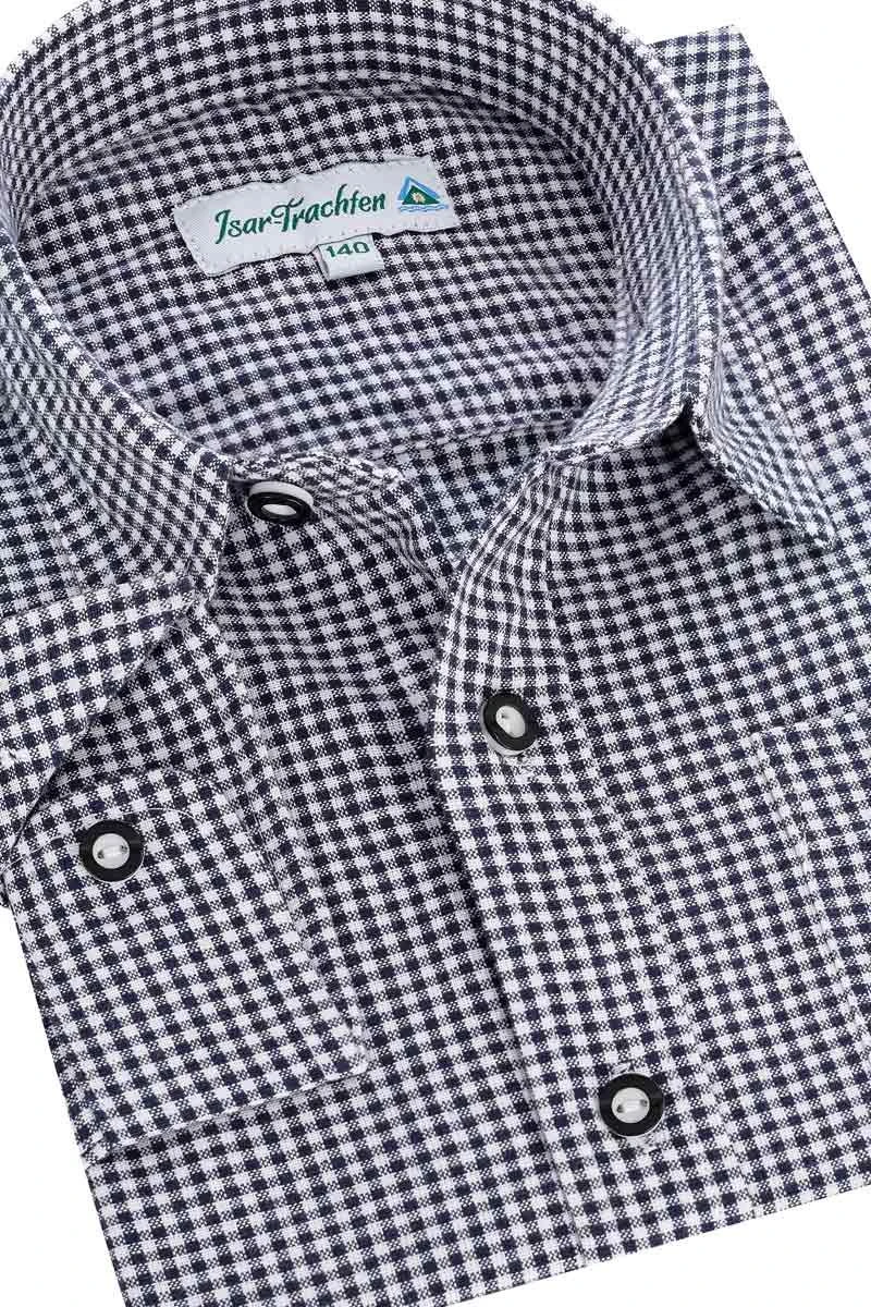 Produktbeschreibung Isar Trachten Kinder Trachtenhemd langarm dunkelblau kariert Martin