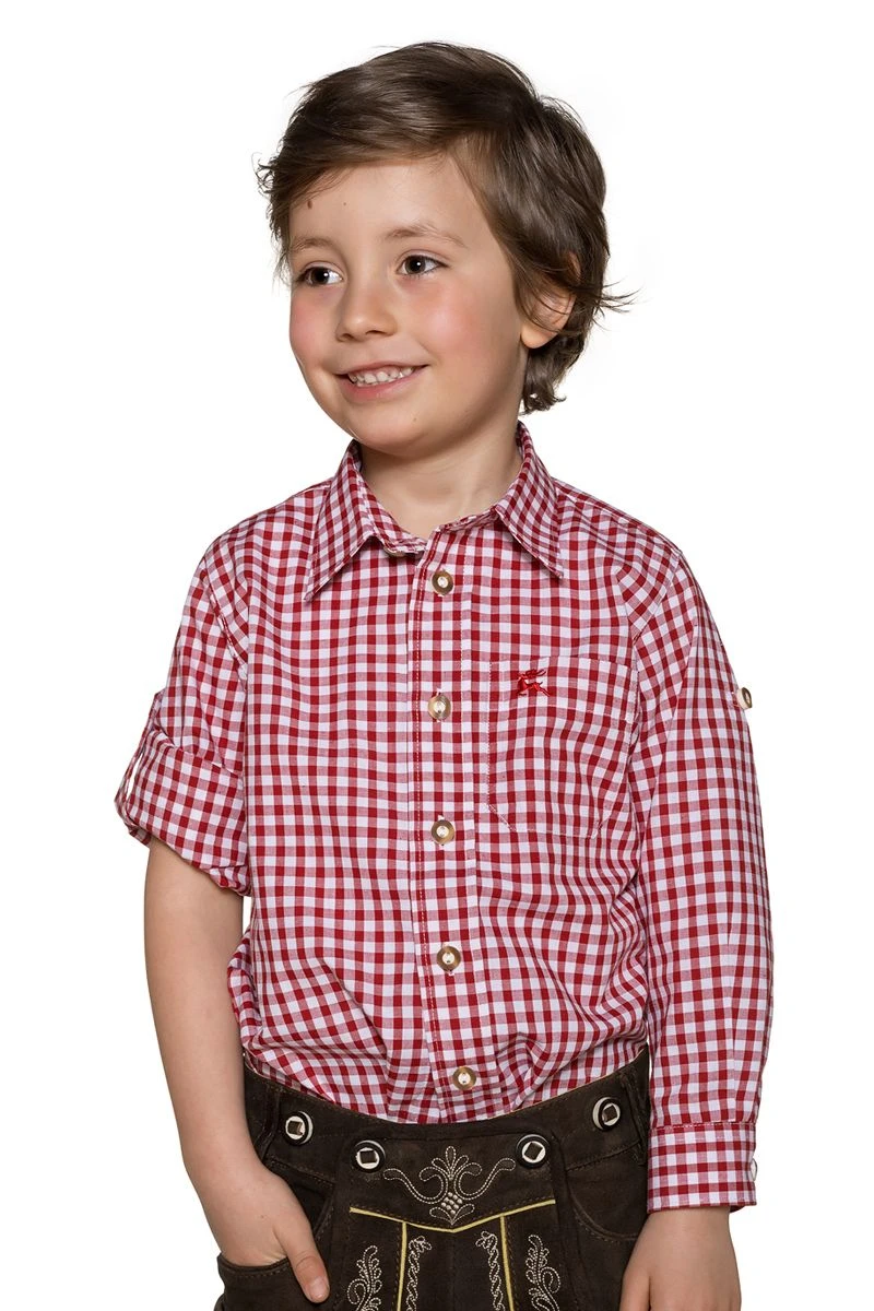 Kinder Trachtenhemd Langarm Rot Karo 140079