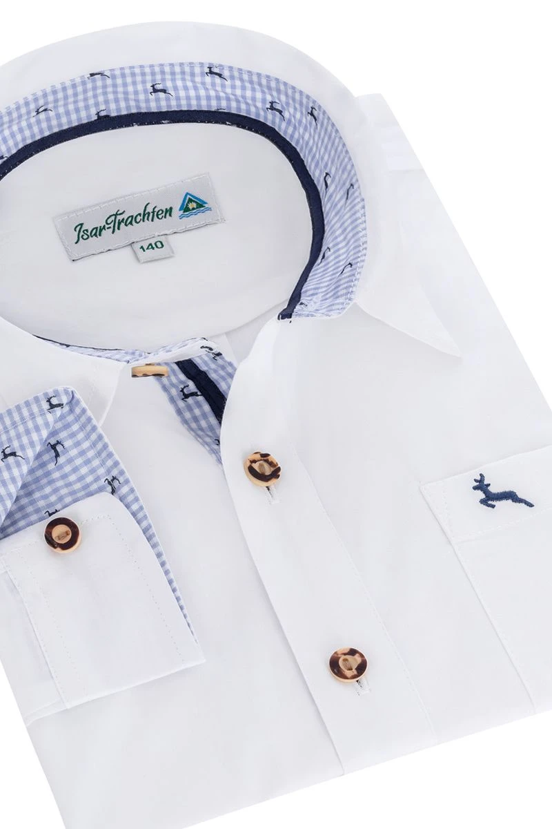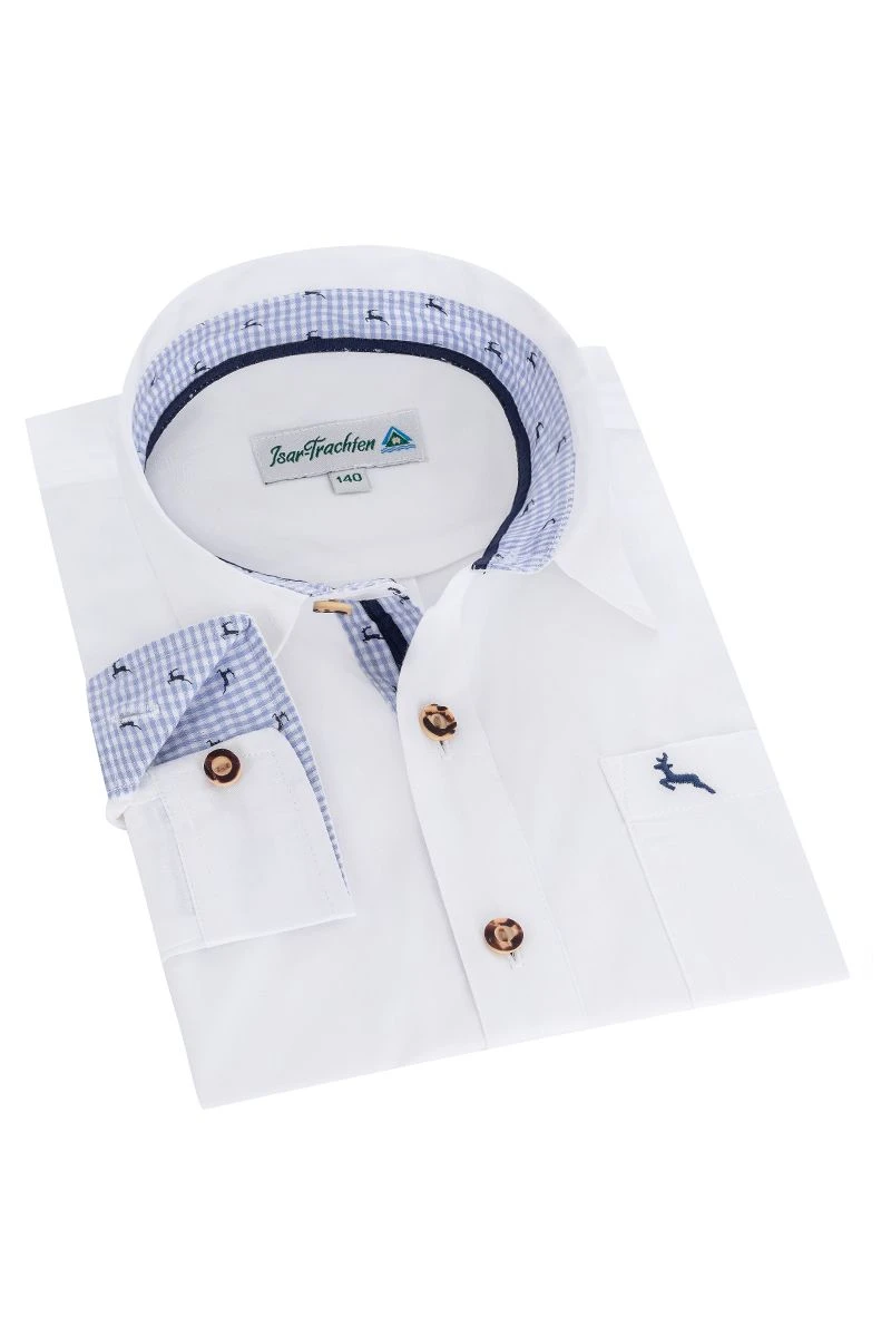 Produktbeschreibung Isar Trachten Kinder Trachtenhemd langarm weiß blau Luis