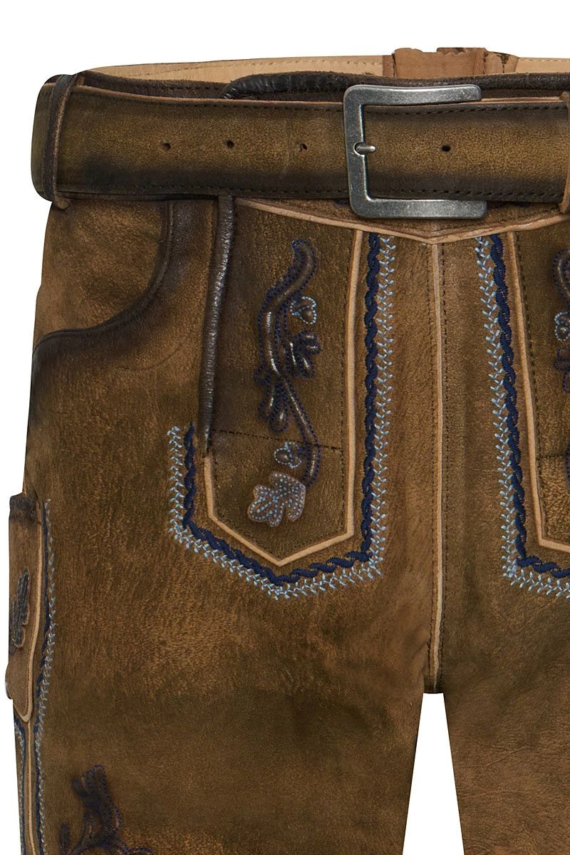 Produktbeschreibung Maddox Lederhose kurz braun blau Denzel