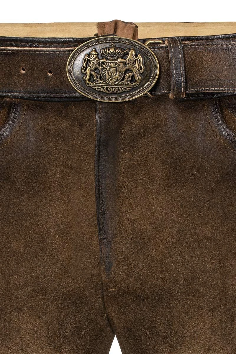 Produktbeschreibung MOSER Lederhose kurz mit Gürtel dunkelbraun antik Sebastian