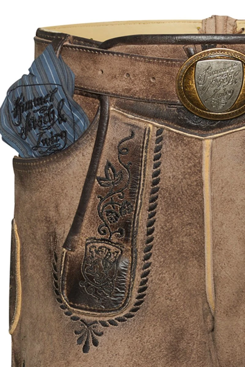 Lederhose Kurz Mit Gürtel Eiche Gespeckt Braumeister 007826