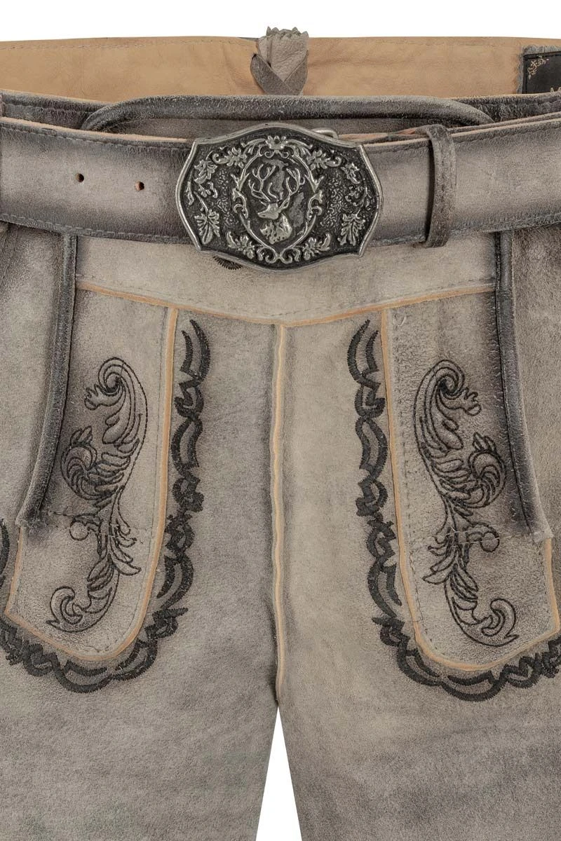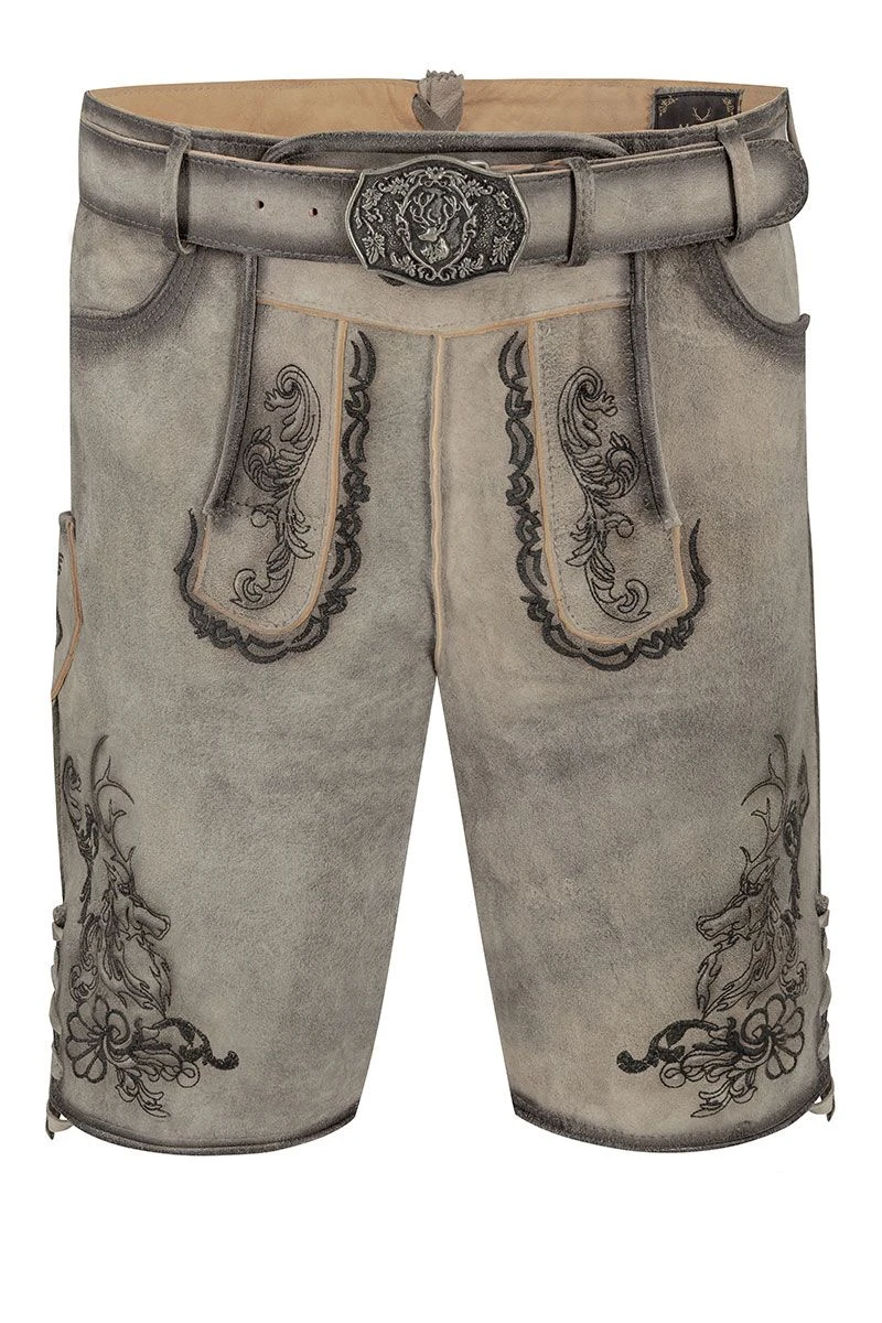 Produktbeschreibung MOSER Lederhose kurz mit Gürtel grau Luis