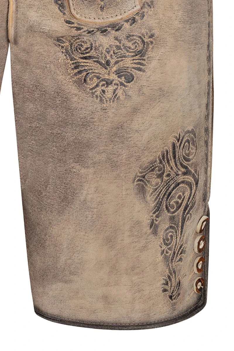 Produktbeschreibung MOSER Lederhose kurz mit Gürtel graubraun Ludwig
