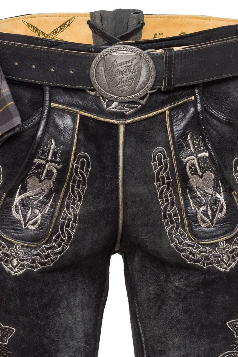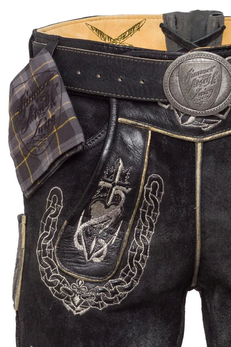 - kurze Lederhose in rauchigem Schwarz von Himmel, Arsch und Zwirn