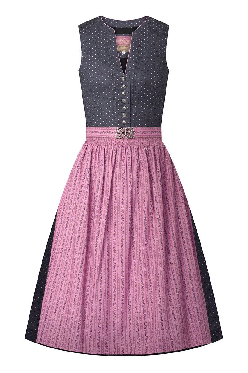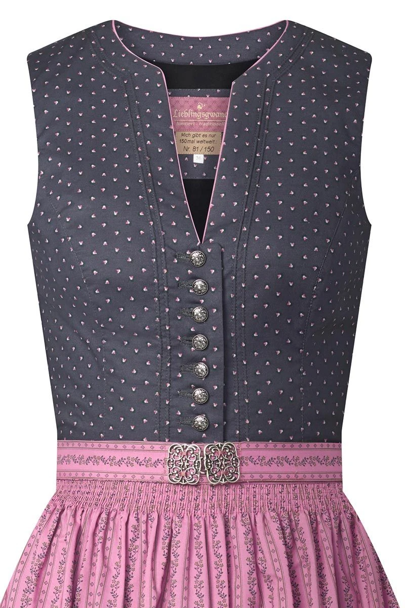 Produktbeschreibung Lieblingsgwand Midi Dirndl 65 cm anthrazit altrosa Stretch Viola – limitiert