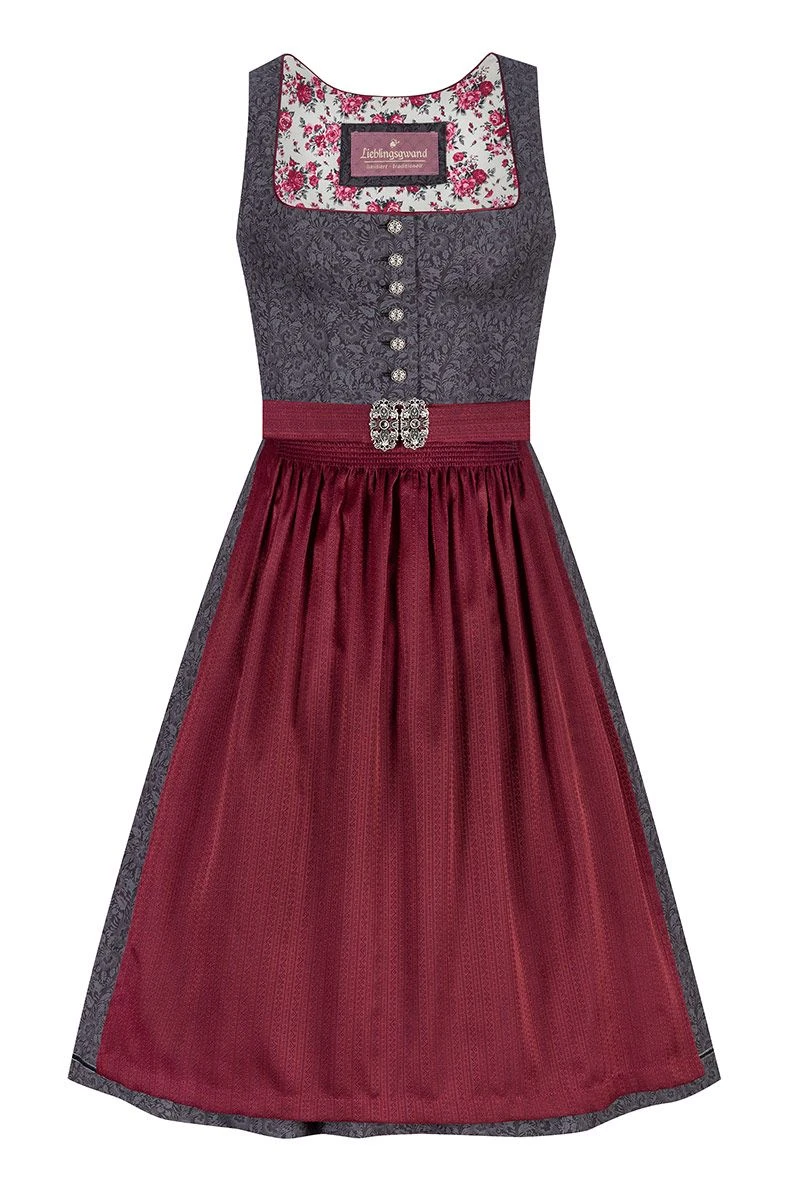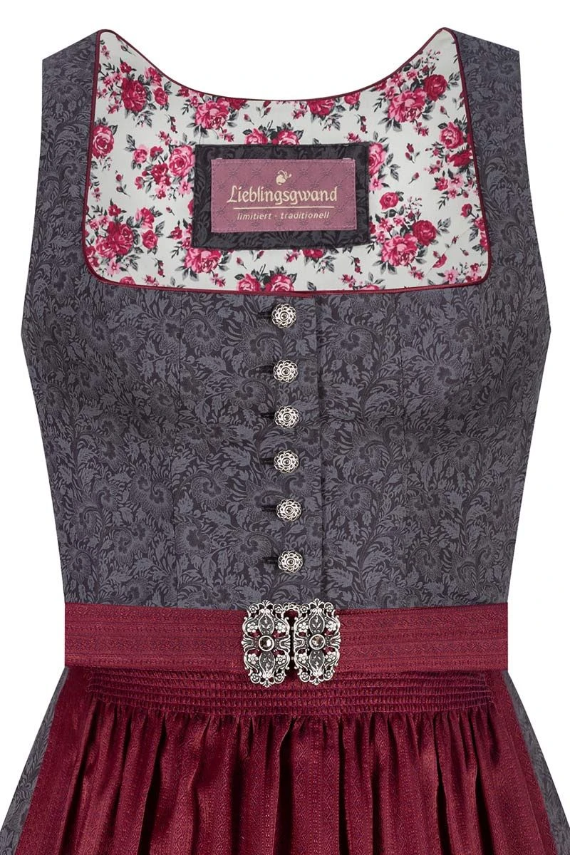 Produktbeschreibung Lieblingsgwand Midi Dirndl 65 cm anthrazit dunkelrot Thea