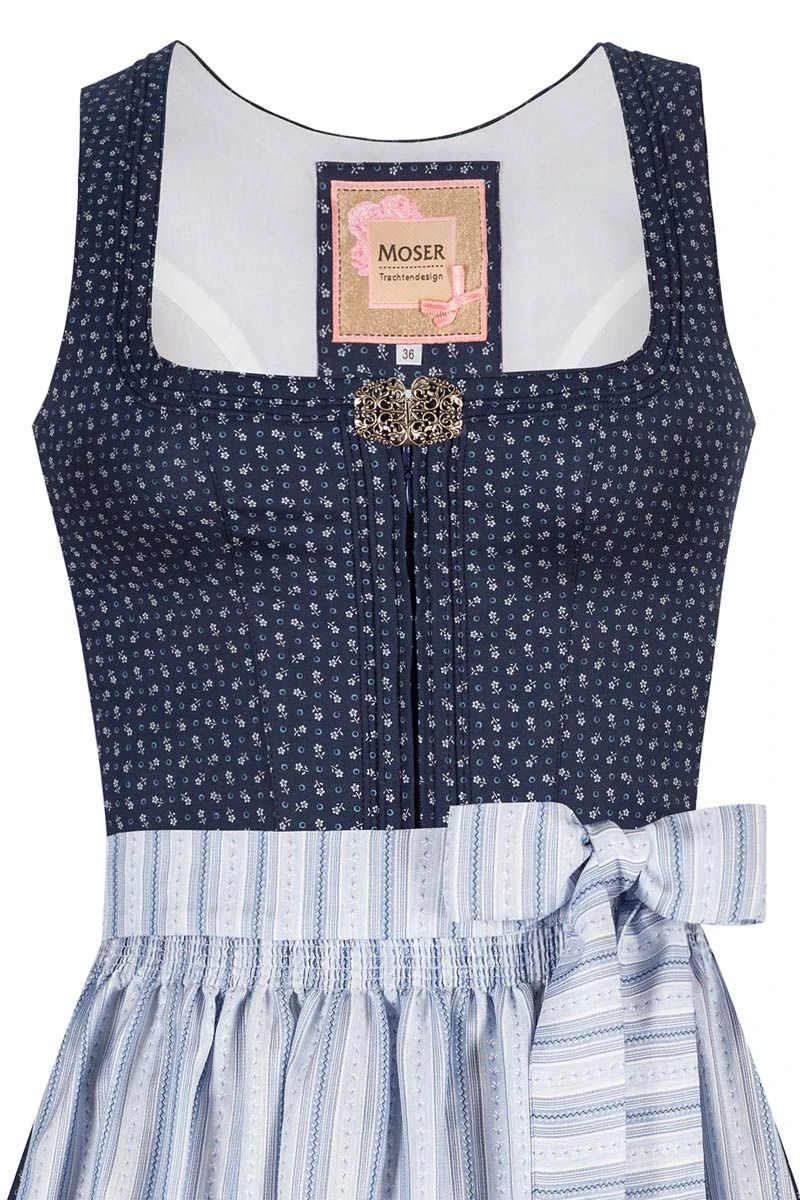 Produktbeschreibung MOSER Midi Dirndl 65 cm dunkelblau hellblau Therese