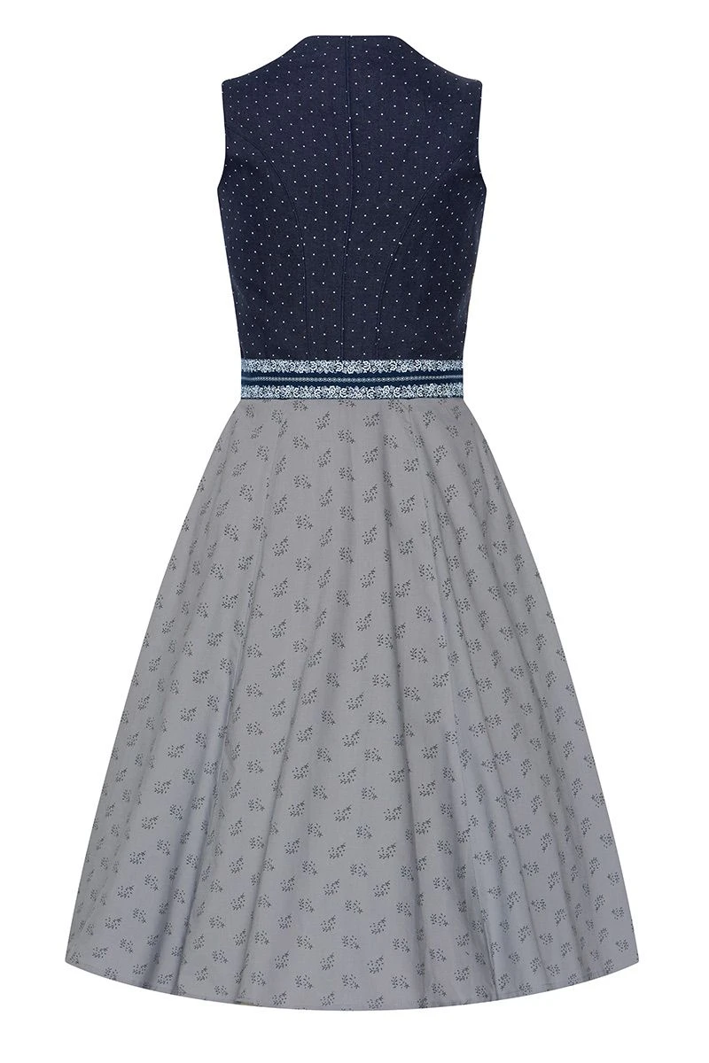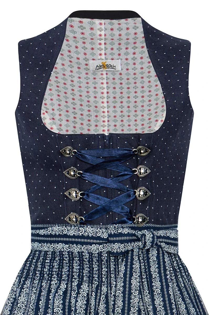Produktbeschreibung Almsach Midi Dirndl 65 cm dunkelblau weiß gemustert Fariba