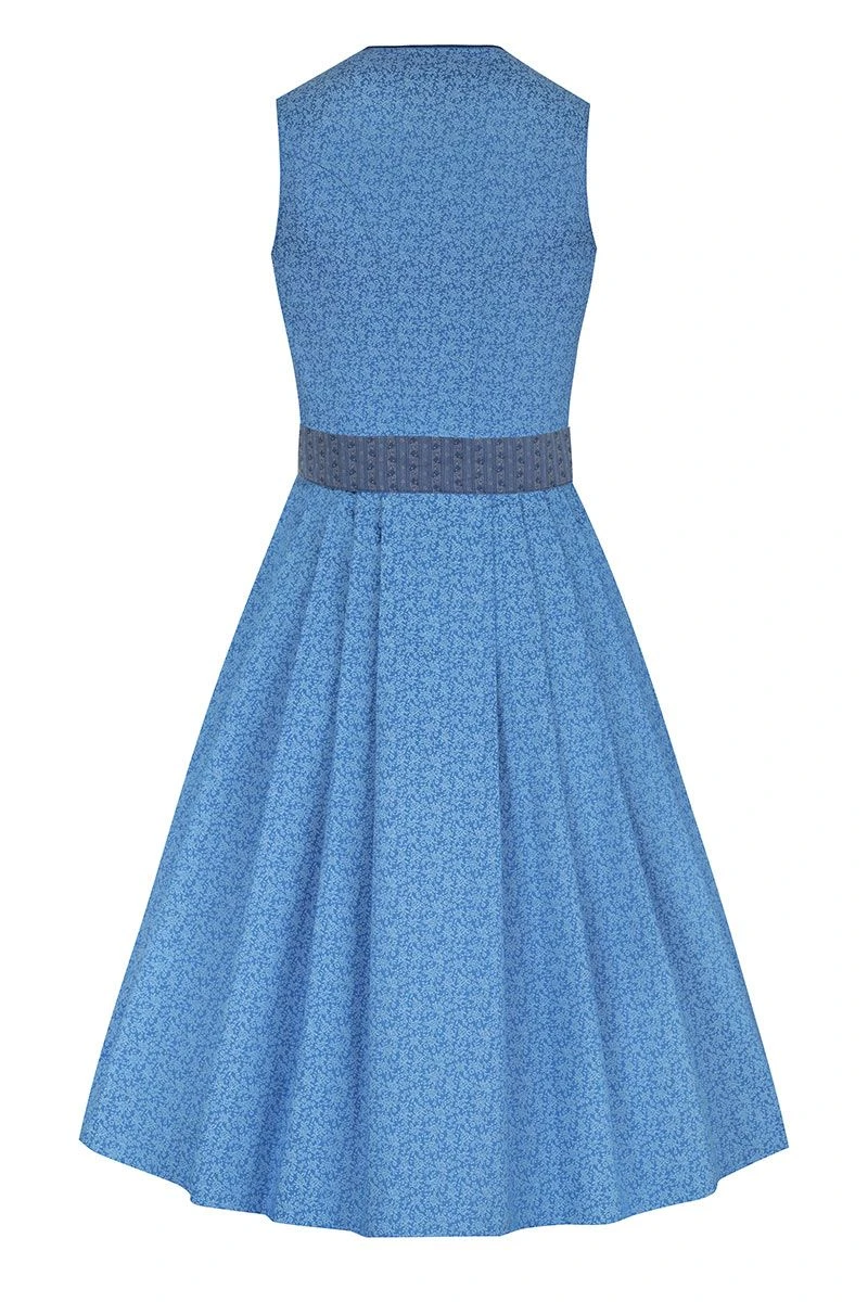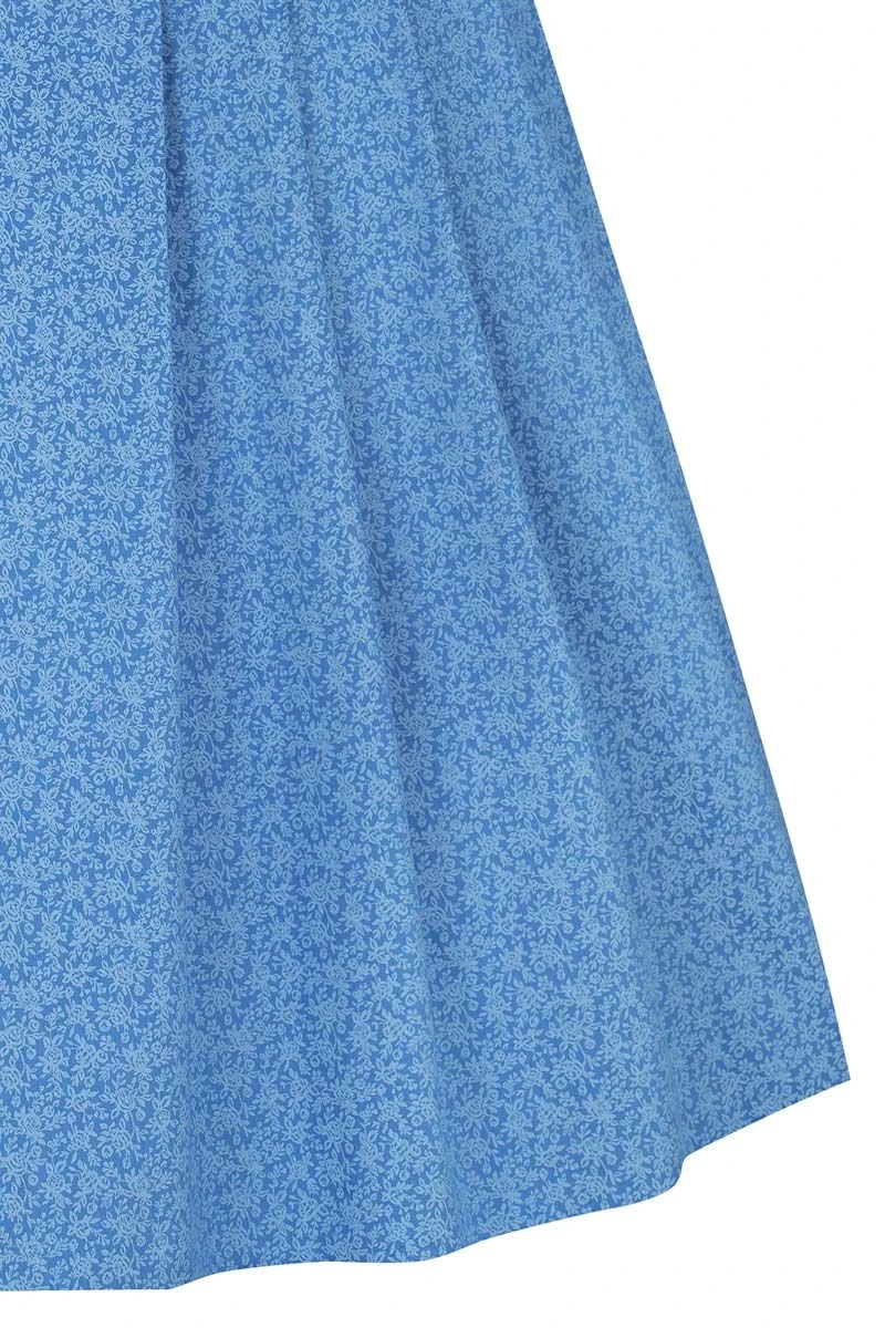 - hellblaues Baumwolldirndl mit filigranem Rosenmuster
