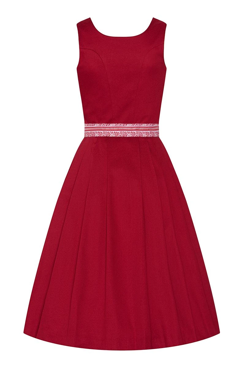 - rotes Baumwolldirndl aus dezent gemustertem Webstoff