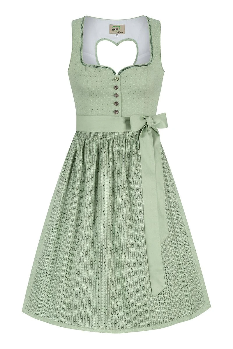 Produktbeschreibung Artmann’s Herzl Midi Dirndl 65 cm salbei gemustert Antonia