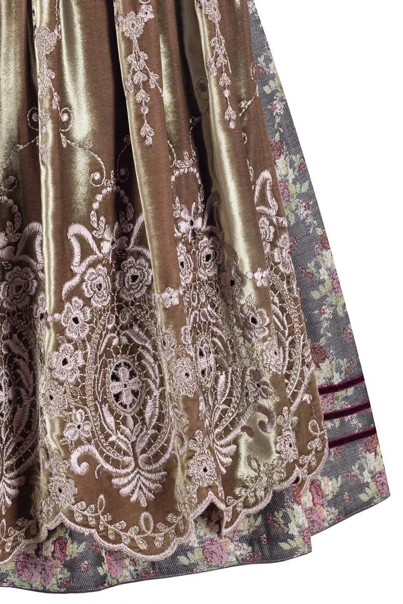 - edle Samtschürze in Oliv mit aufwendigen Blumenstickereien