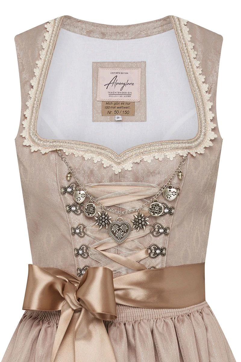 Produktbeschreibung Alpenglanz Midi Dirndl 65 cm taupe inkl. Charivari Lucienne – limitiert