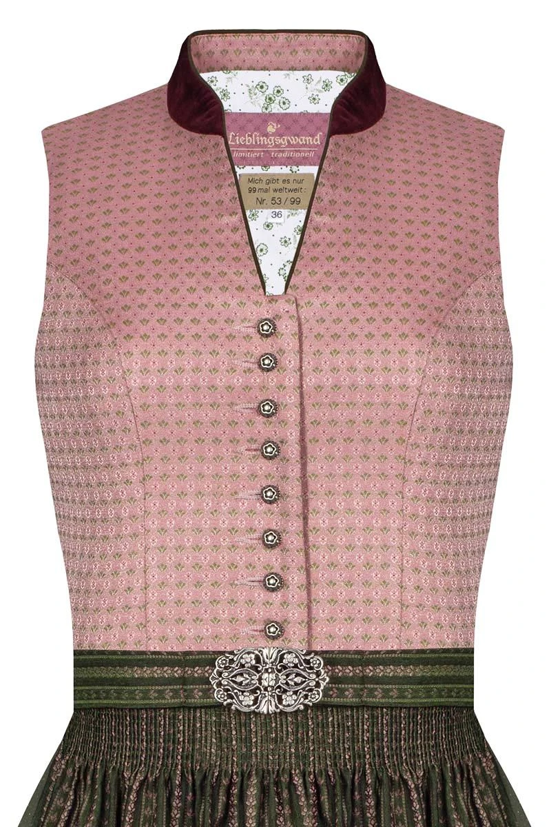Produktbeschreibung Lieblingsgwand Midi Dirndl 65er altrosa oliv Amalia – limitiert