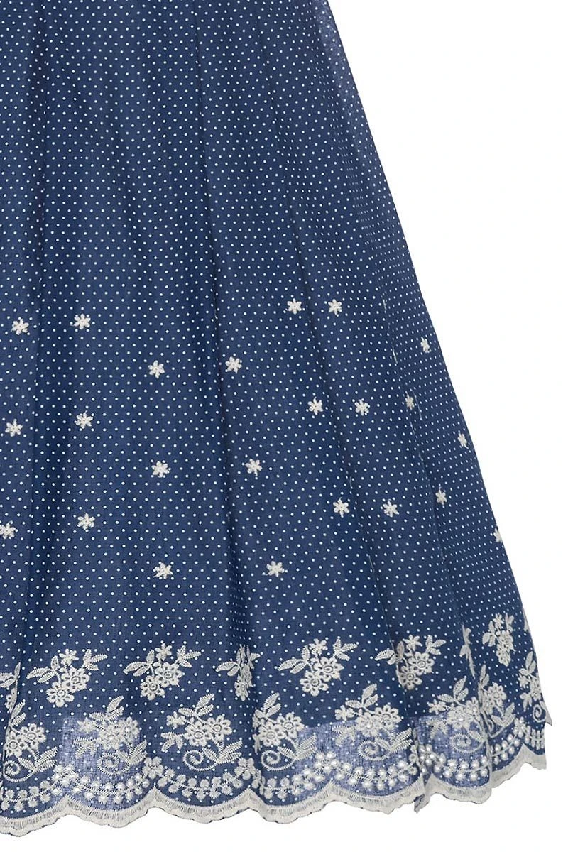 - In Falten gelegtes Rockteil mit Stickereien