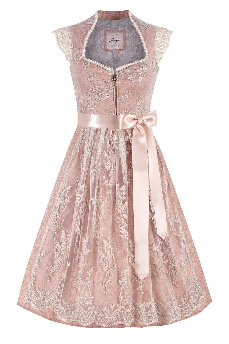 Produktbeschreibung Alpenglanz Midi Dirndl 70 cm altrosa creme Astrid