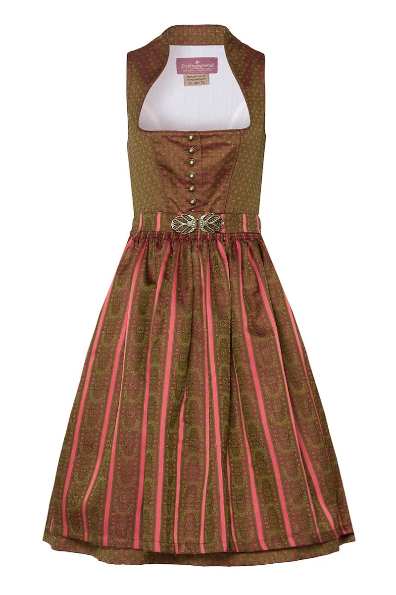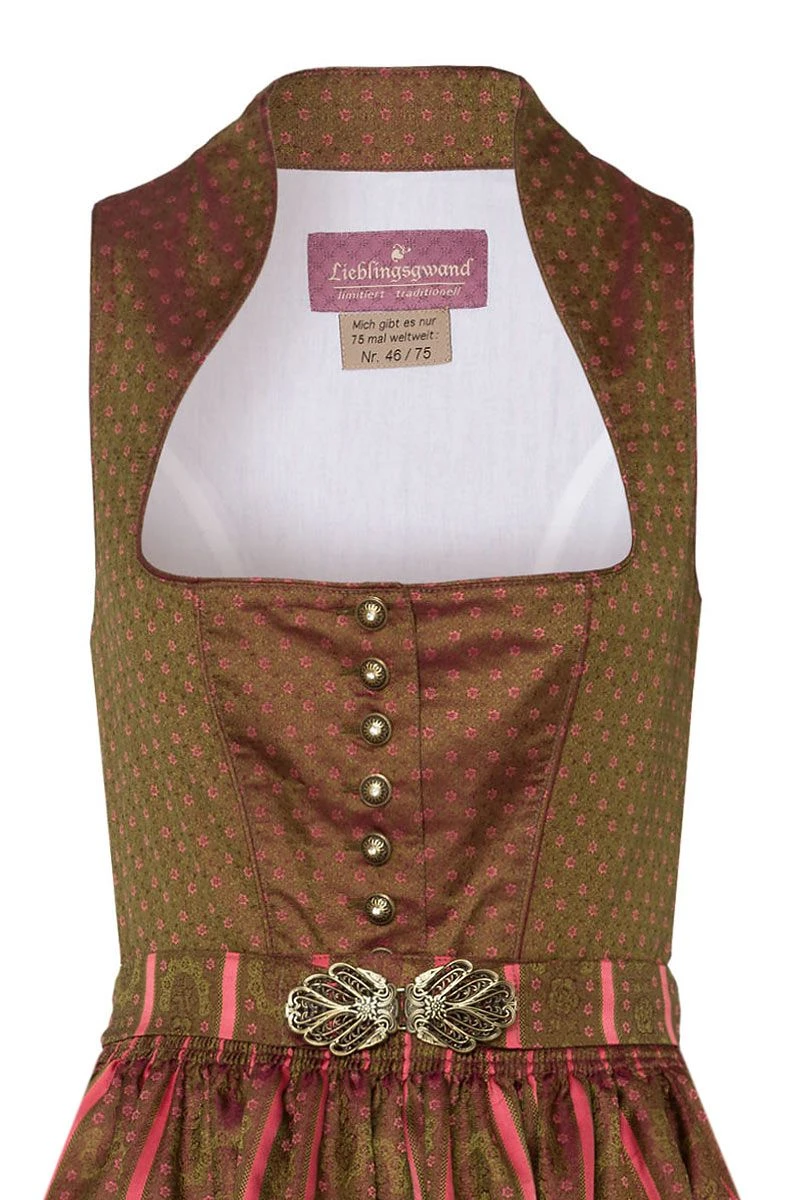 Lieblingsgwand Midi Dirndl 70 cm oliv geblümt koralle Katrin – limitiert