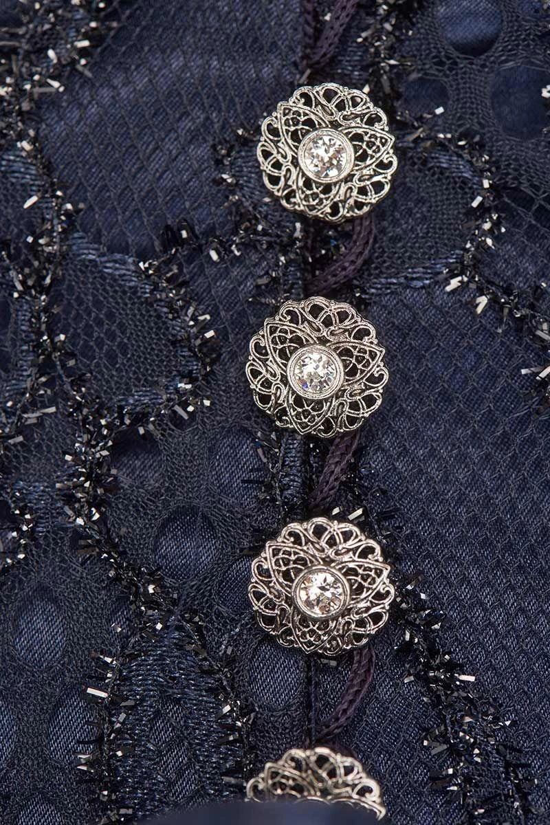 - silberne Knöpfe mit kleinen Strasssteinen