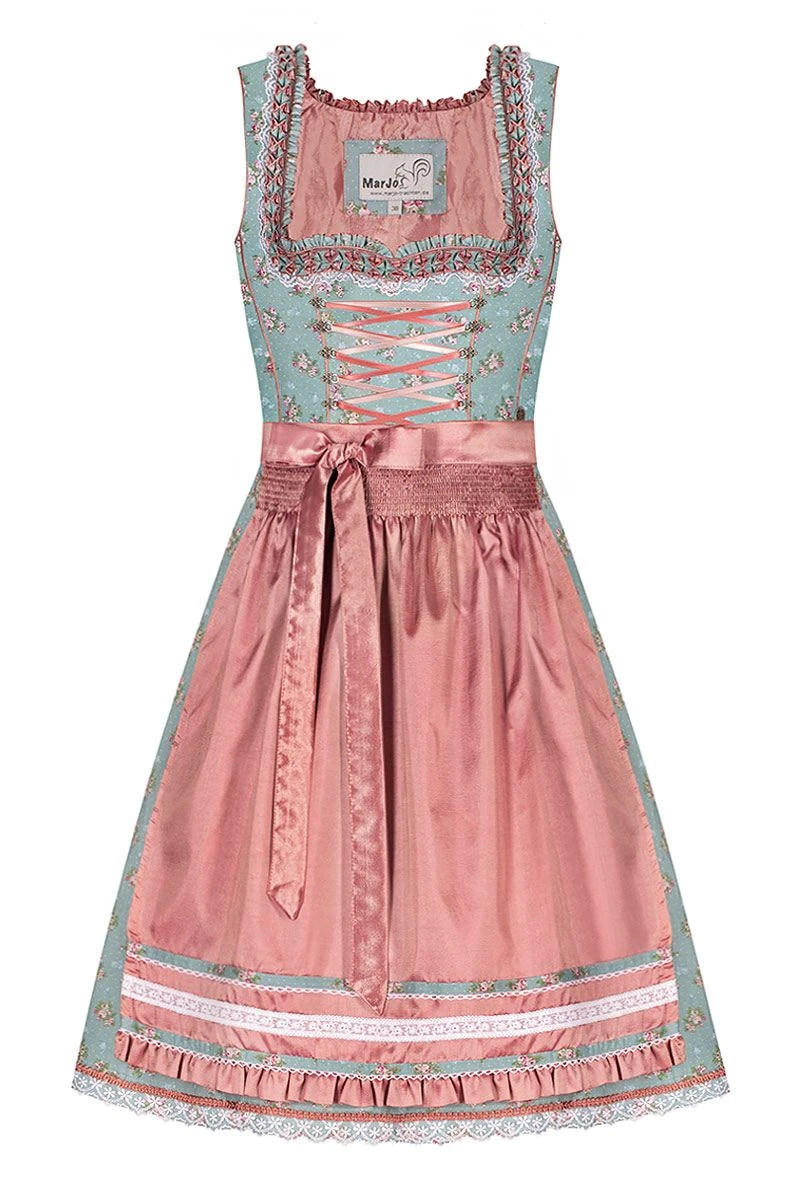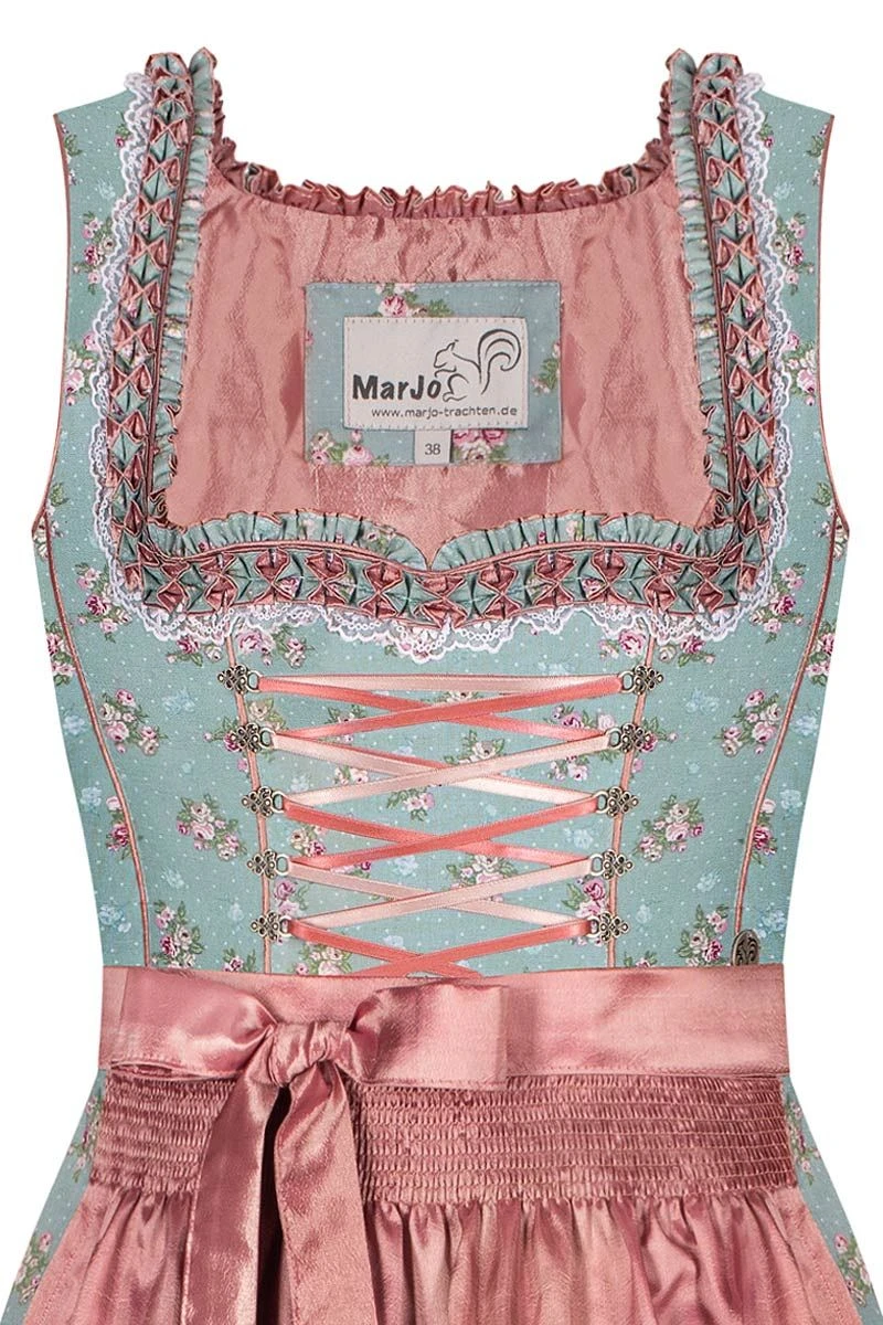 Produktbeschreibung MarJo Mini Dirndl 55er türkis geblümt apricot Farona