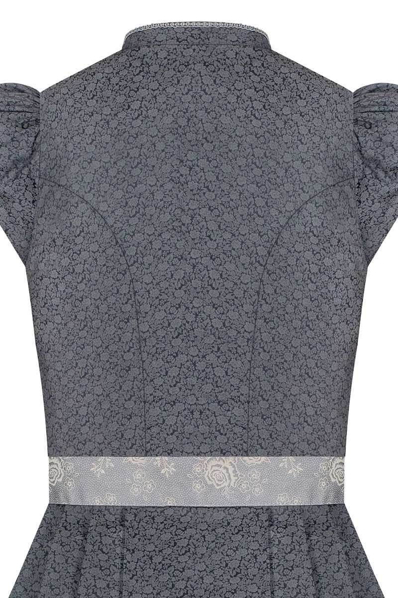 Unser exklusiv für MOSER produziertes Dirndl Ricarda ist einfach bezaubernd: sowohl das anthrazitfarbene Dirndl als auch die hellgraue Schürze sind mit hübschen Blumenmustern bedruckt. Auch die altsilbernen Knöpfe, mit denen das Mieder vorne geschlossen wird, sind mit kleinen Blümchen verziert. Der schmale Stehkragen geht in einen Herzausschnitt über, der mit einer eleganten Kordelborte geschmückt ist. Kleine Puffärmelchen machen diesen süßen Look komplett – eine zusätzliche Dirndlbluse wird hier nicht benötigt!