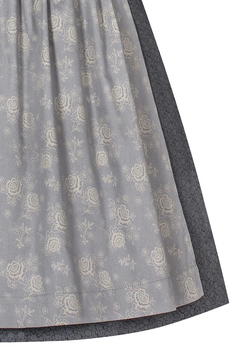 - hellgraue Dirndlschürze mit aufgedruckten Rosenblüten und kleinen Pünktchen
