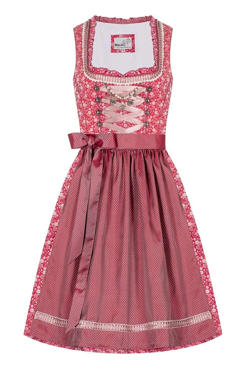 Produktbeschreibung MarJo Mini Dirndl 60er rot rosa gemustert Grada