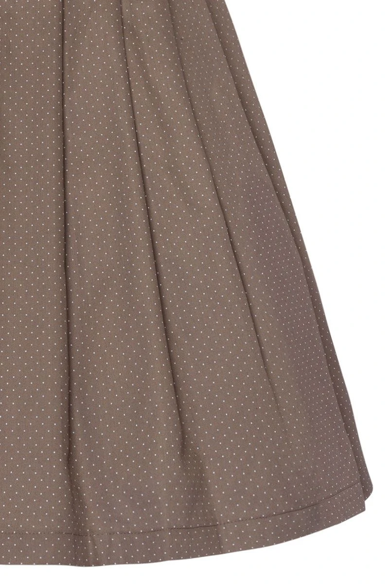 - taupefarbenes Kleid mit kleinen, weißen Tupfen