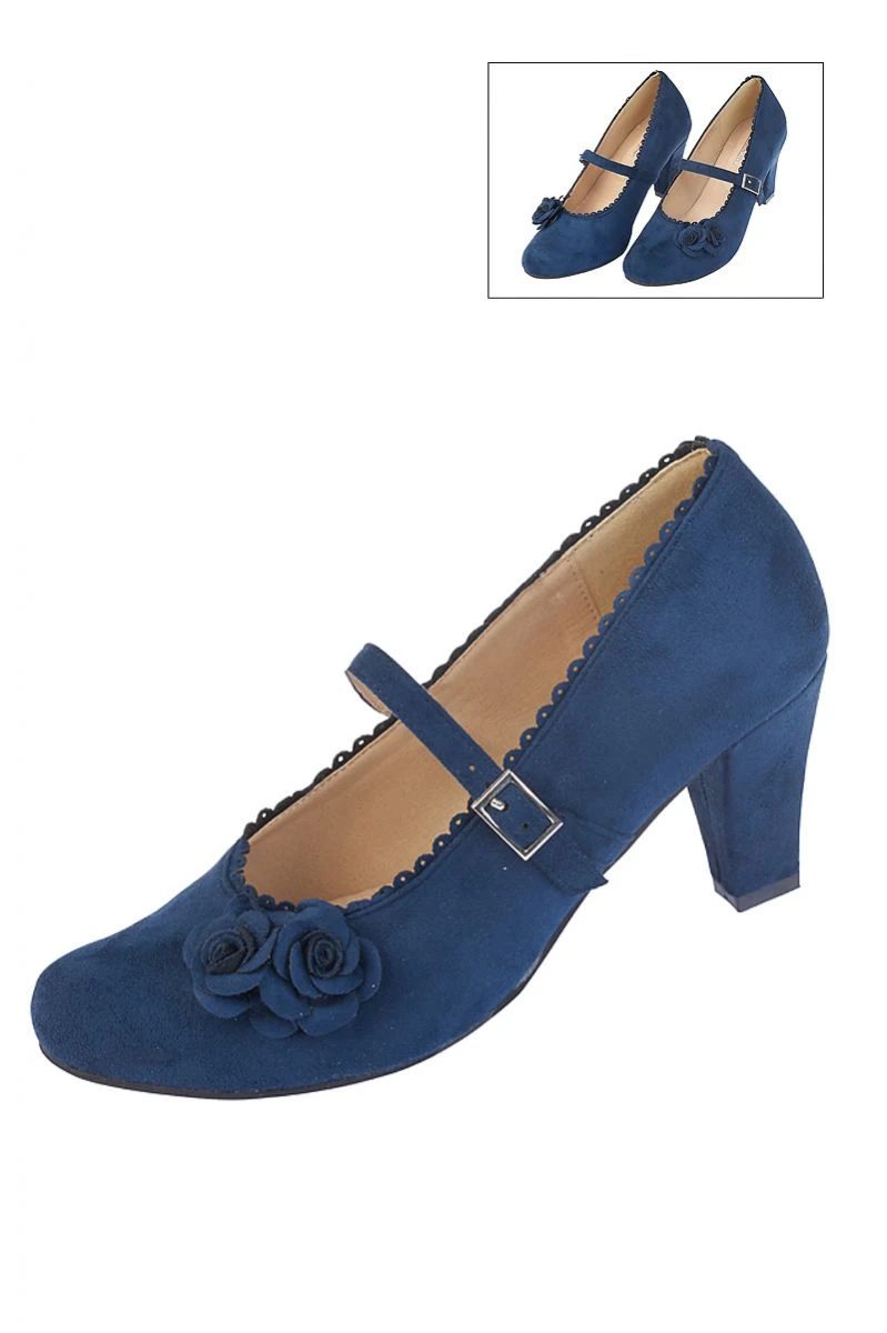 - Elegante Trachtenpumps mit Riemen und zwei Blumen