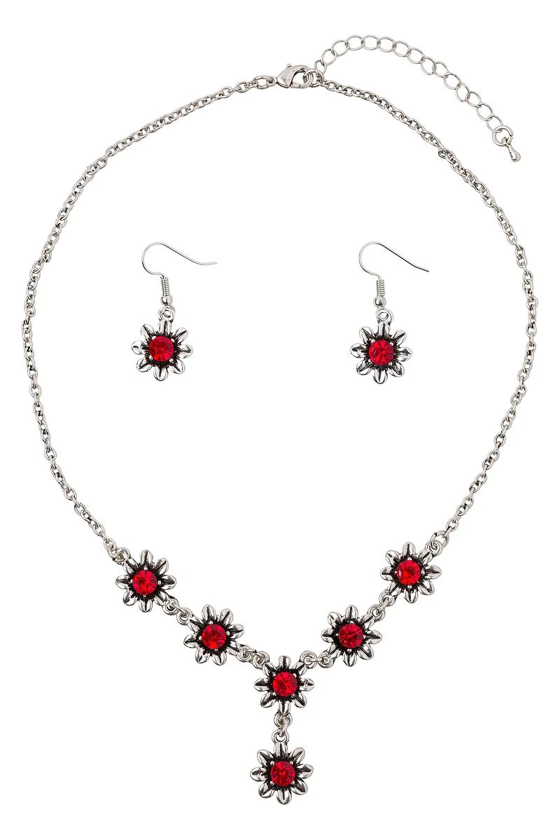 - Altsilberfarbenes Schmuckset mit farbigen Schmucksteinen bestehen aus Collier & Ohranhänger