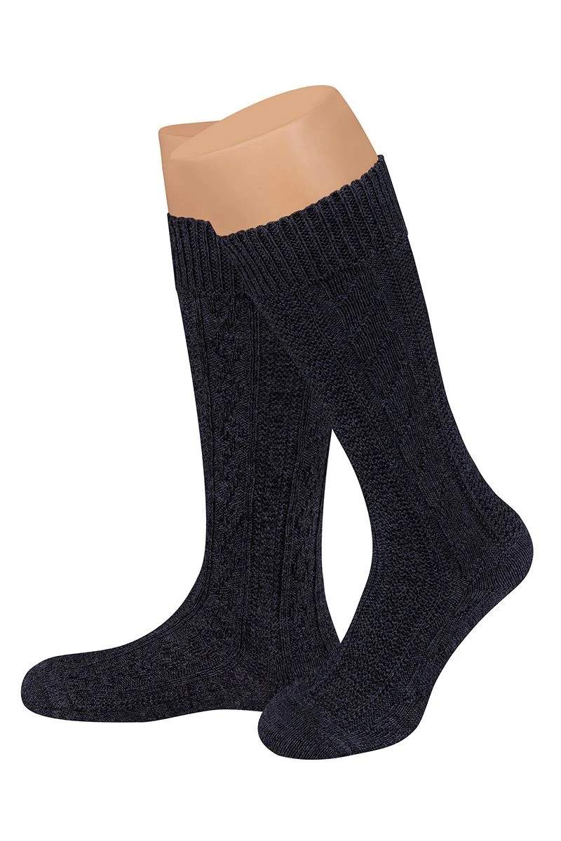 Produktbeschreibung Country Socks Trachten Kniestrümpfe dunkelblau mit Zopfmuster