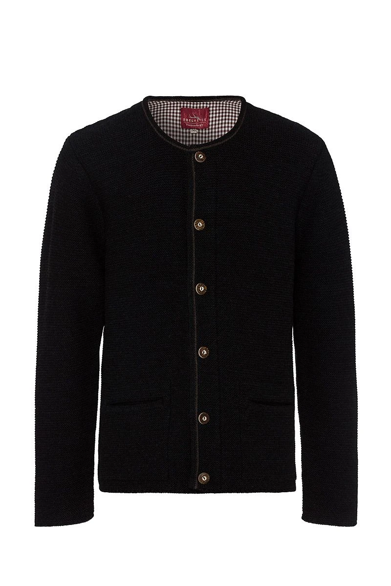 Traditionelle Gemütlichkeit: Die Strickjacke »Leon« von Edelheiss macht nicht nur optisch was her, sondern überzeugt auch mit wärmendem Komfort. Das elegante Design des fest gestrickten Jankers wird von den Hornknöpfen fesch akzentuiert. Praktische Eingrifftaschen und der klassische Schnitt machen die Trachtenjacke auf jedem Fest zum Hit. In Kombination mit Lederhose und Trachtenhemd begleitet die Herrenjacke stilecht zur Familienfeier oder die nächste Wiesn.