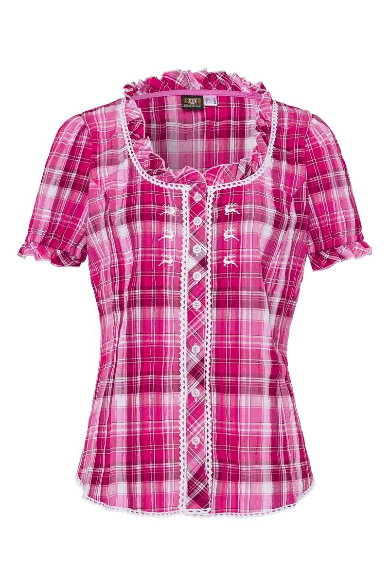 Trachtenbluse Kurzarm Pink Kariert Stretch 002617