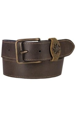 - Antikbrauner Trachtengürtel mit aufgenieteten Edelweiß-Applikationen