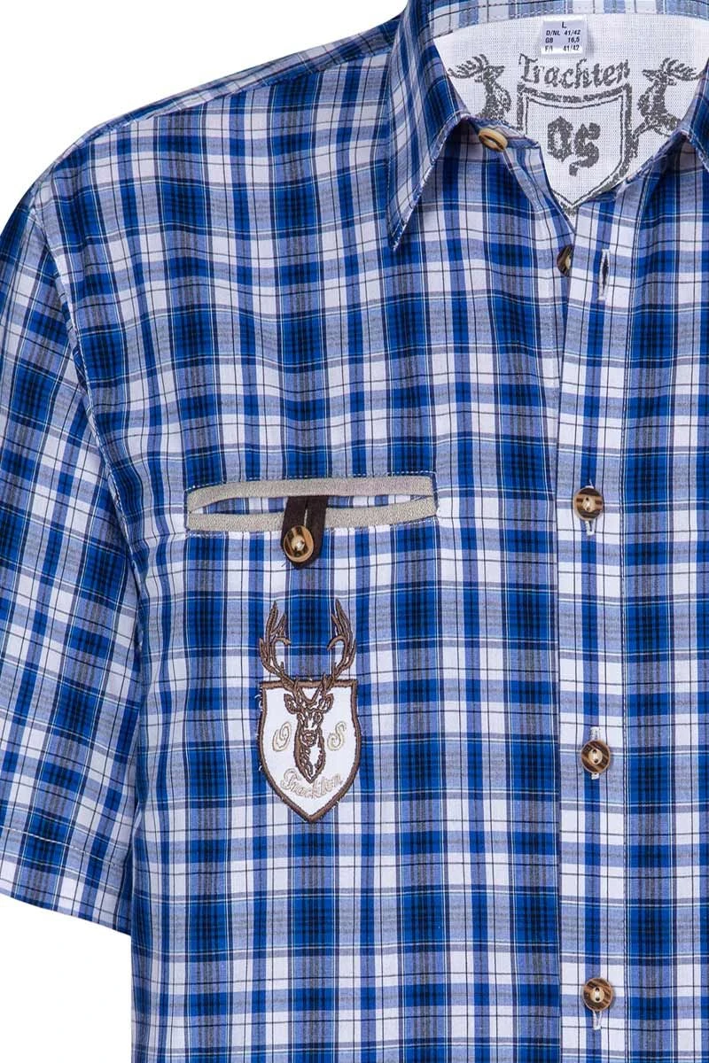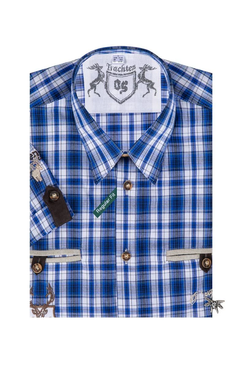 OS-Trachten Trachtenhemd kurzarm dunkelblau karo regular fit