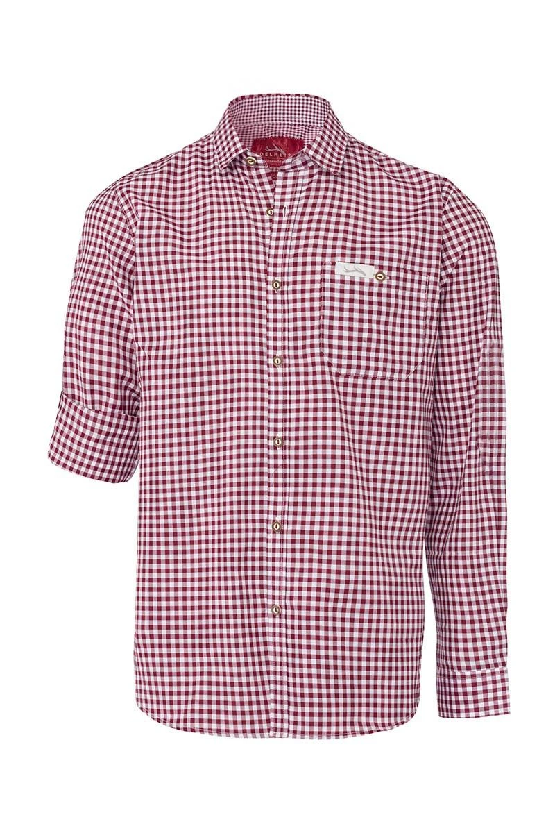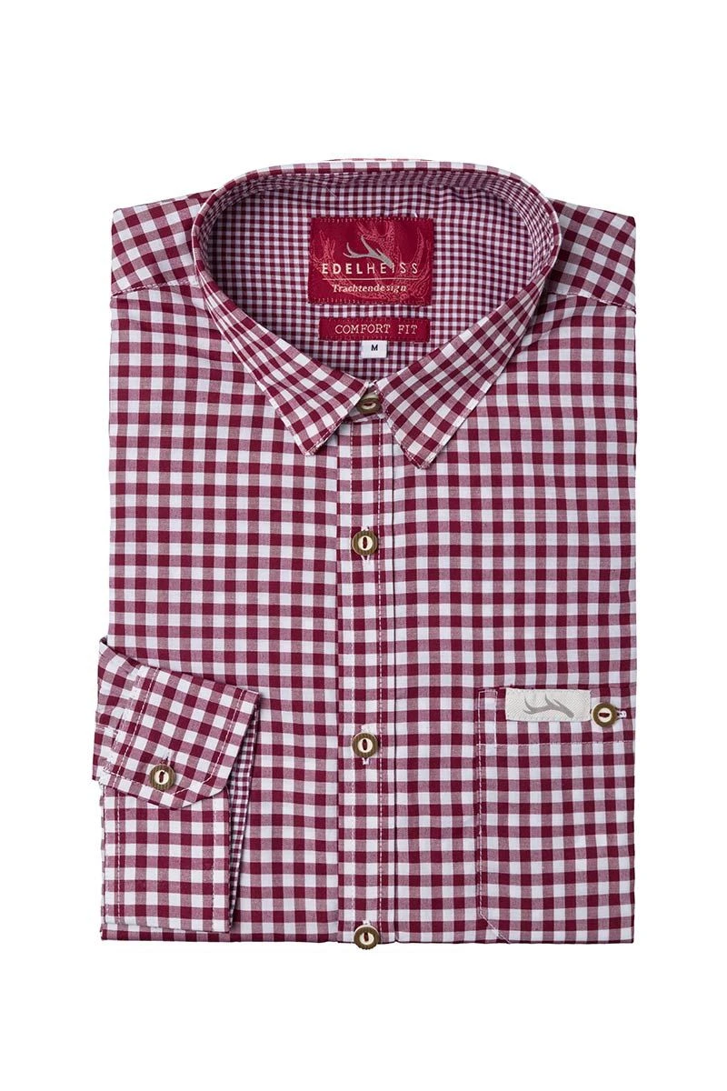 Edelheiss Trachtenhemd langarm dunkelrot karo Robby