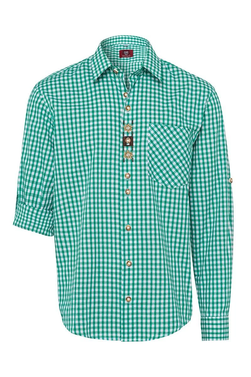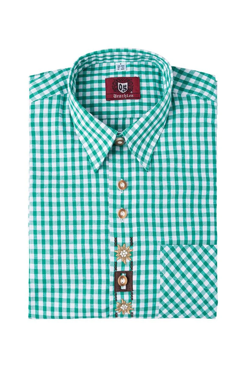 Produktbeschreibung OS-Trachten Trachtenhemd langarm grün karo mit Applikationen