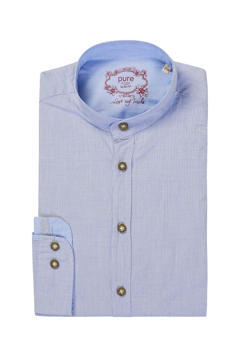 Produktbeschreibung Hatico Trachtenhemd langarm hellblau gestreift Leopold – slimfit