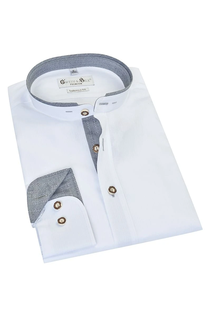 Produktbeschreibung G’weih & Silk Trachtenhemd langarm weiß grau Pilsensee
