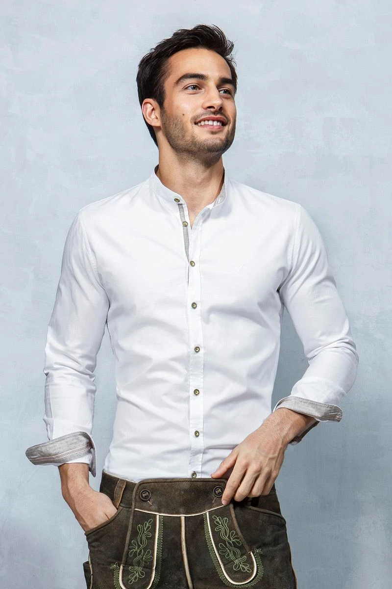 - tailliert geschnittenes, weißes Trachtenhemd mit Stehkragen