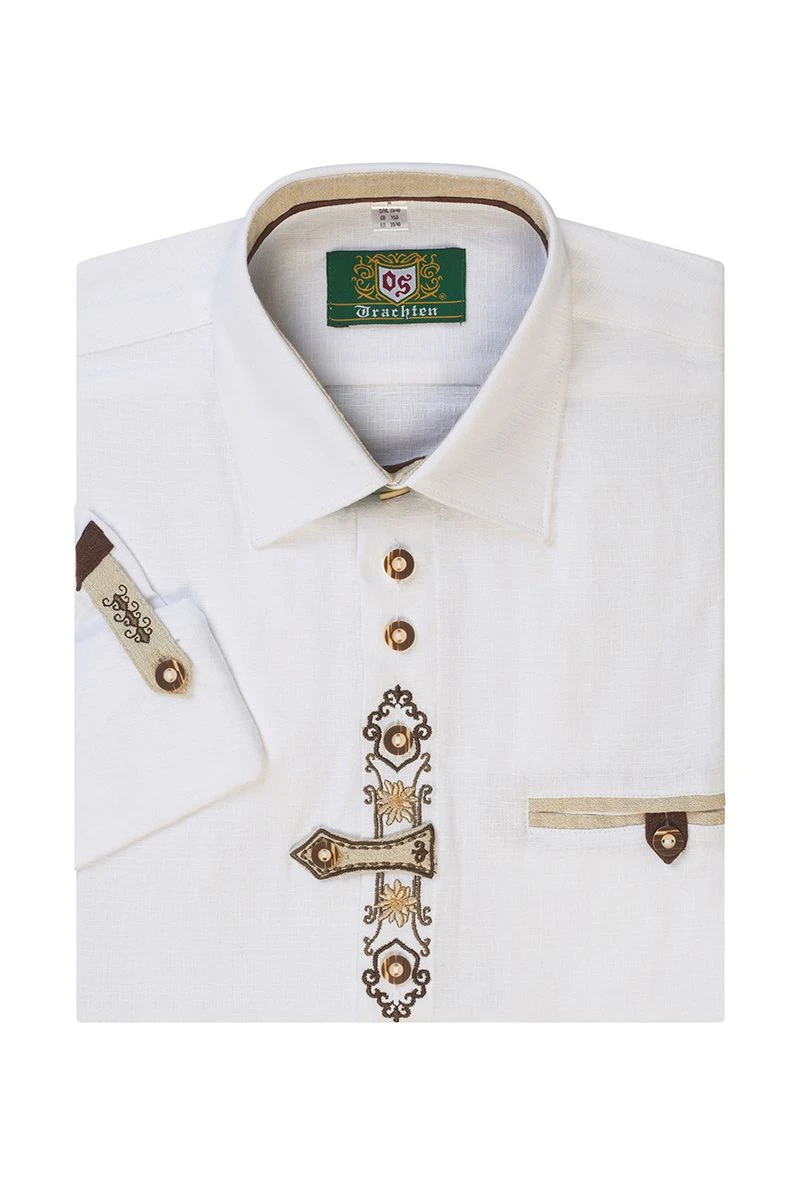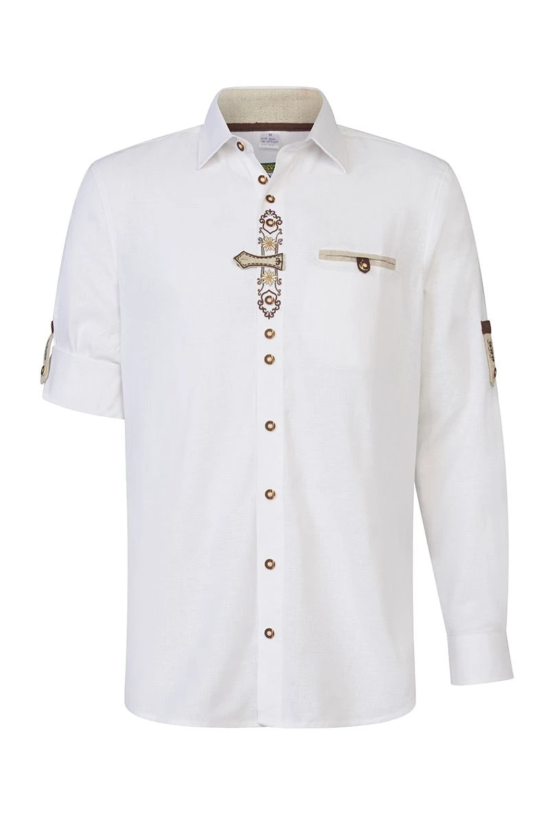 Produktbeschreibung OS-Trachten Trachtenhemd langarm weiß natur mit Applikationen
